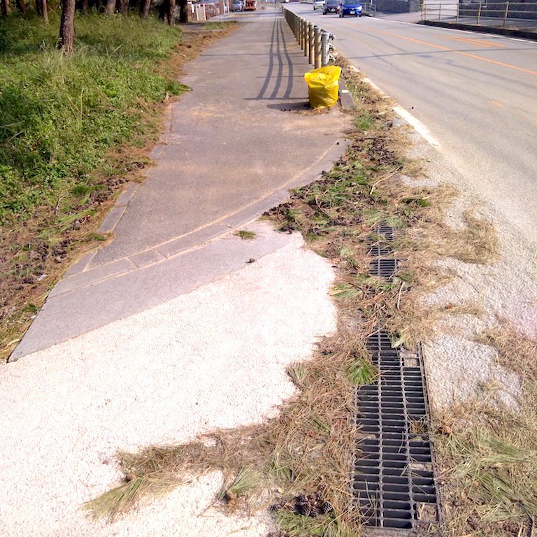 いつもお世話になっている仲原馬場。琉球松が生い茂る美しい場所ですが、台風の後は、松の葉が飛散します。