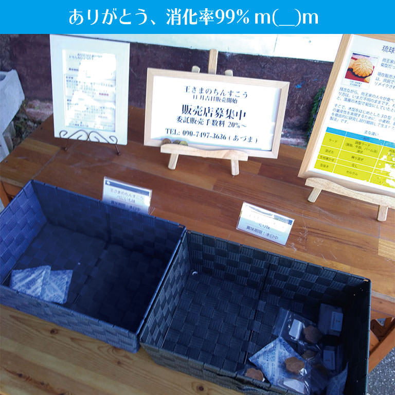 食べていただかないと、庶民派ちんすこうとの違いがわからないので、消化率が高いことは非常に嬉しいです。